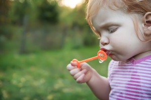 Isabella loves bubbles! She has been trying to learn how to blow them herself, but she had not quite been able to figure it out…until now. The other day, we were outside playing with bubbles. I started blowing them at her and she would run through them and giggle. (Which is the sweetest sound, by the way.) I love to see her smile light up as she is playing in those bubbles. She wanted to try blowing them herself. She usually takes her turn trying to blow them, but normally just ends up with “bubble juice” all over her and spittles running everywhere. But we tried it anyway. Here she is getting ready for her first blow.